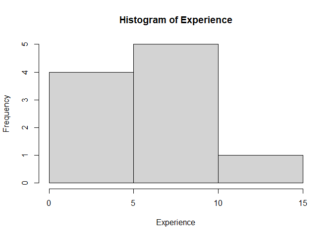 # You can add the custom labels if you would like `main='Histogram of Experience',xlab='Experience', `
